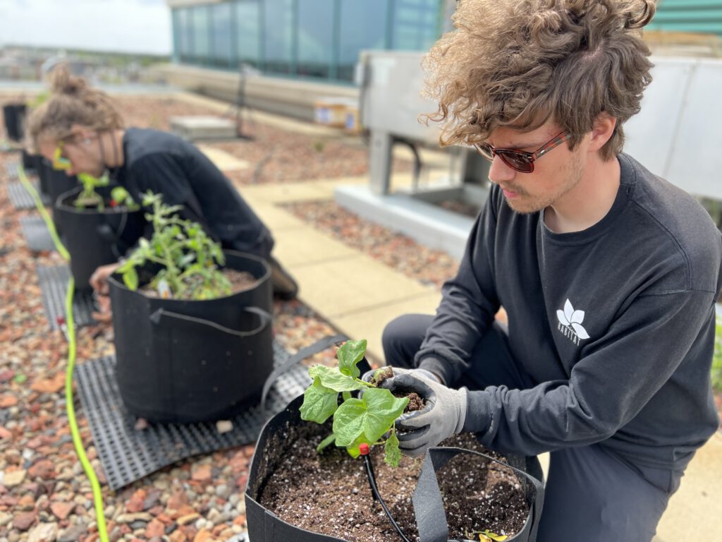 A record number of Canadians don’t have enough to eat—and in Alberta alone, children represent a distressing 36% of food bank visits. To improve access to nutritious, fresh produce, we partnered with MicroHabitat to install an urban farm on the roof of AMA Edmonton South in summer 2024. Our small garden yielded 225 lbs of food, which supported Edmonton’s Food Bank, in addition to helping provide 60 meals to The Breakfast Club of Canada.